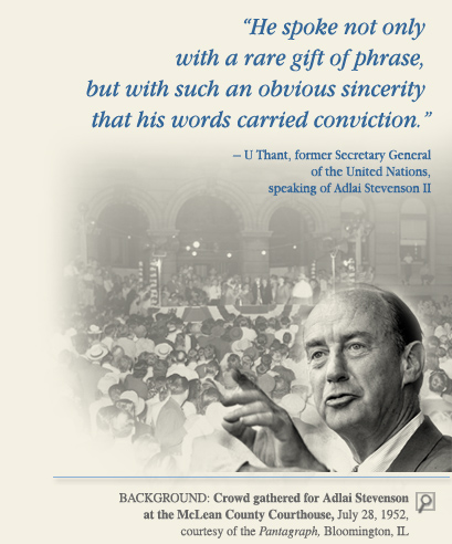 From the beginning of his political career through his final years as Ambassador to the UN, Adlai's speeches, debates, interviews, and writings offered abundant examples of his wry humor, grace, common sense, and profound wisdom.