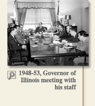 1948 Elected governor of Illinois, serving one term, 1949-1953; earns reputation as reformer who enjoys modest success cleaning up historically corrupt and mismanaged state government